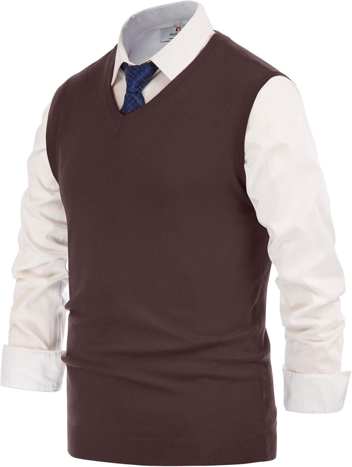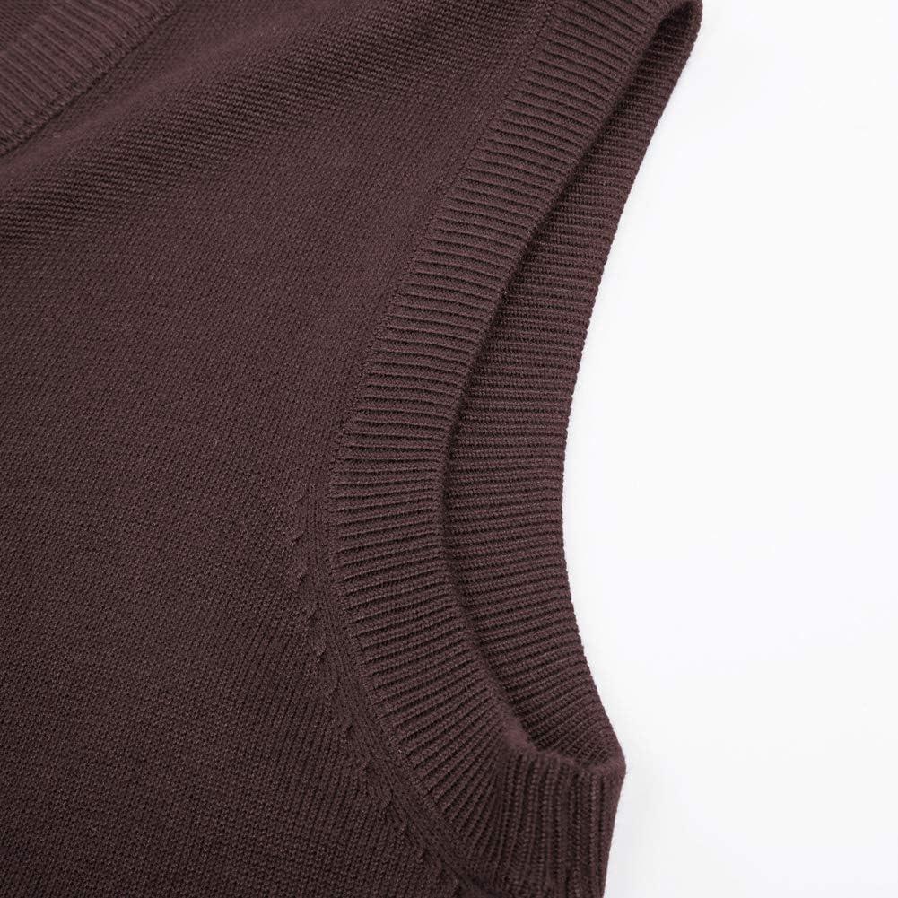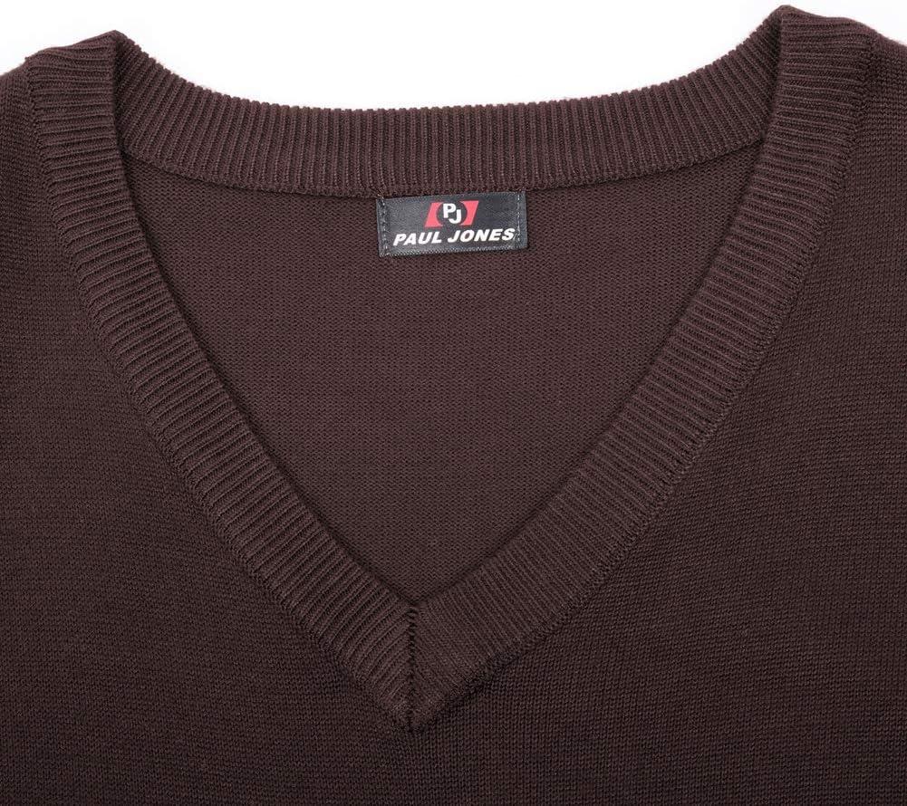 PJ PAUL JONES Mens V-Neck Knitted Sweater Vest Solid Plain Sleeveless Pullover Knitwear(Coffee)