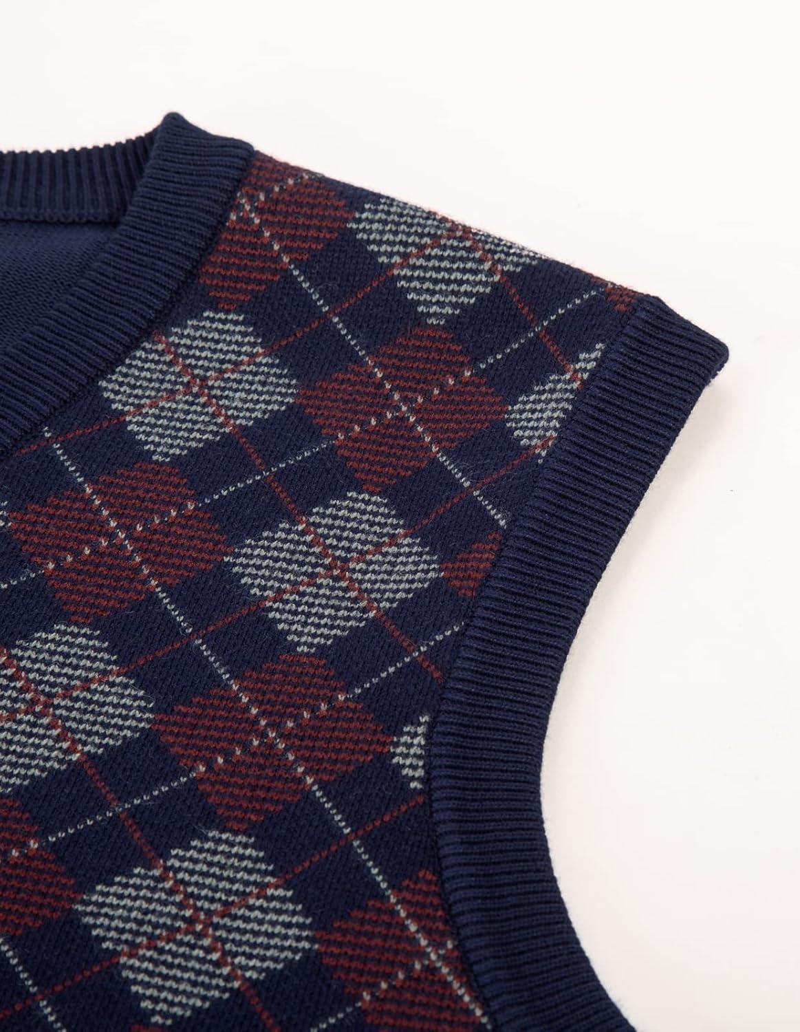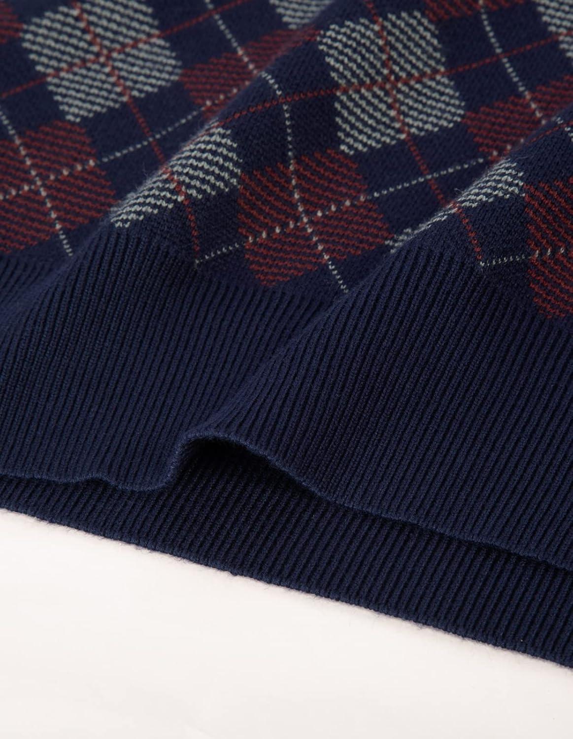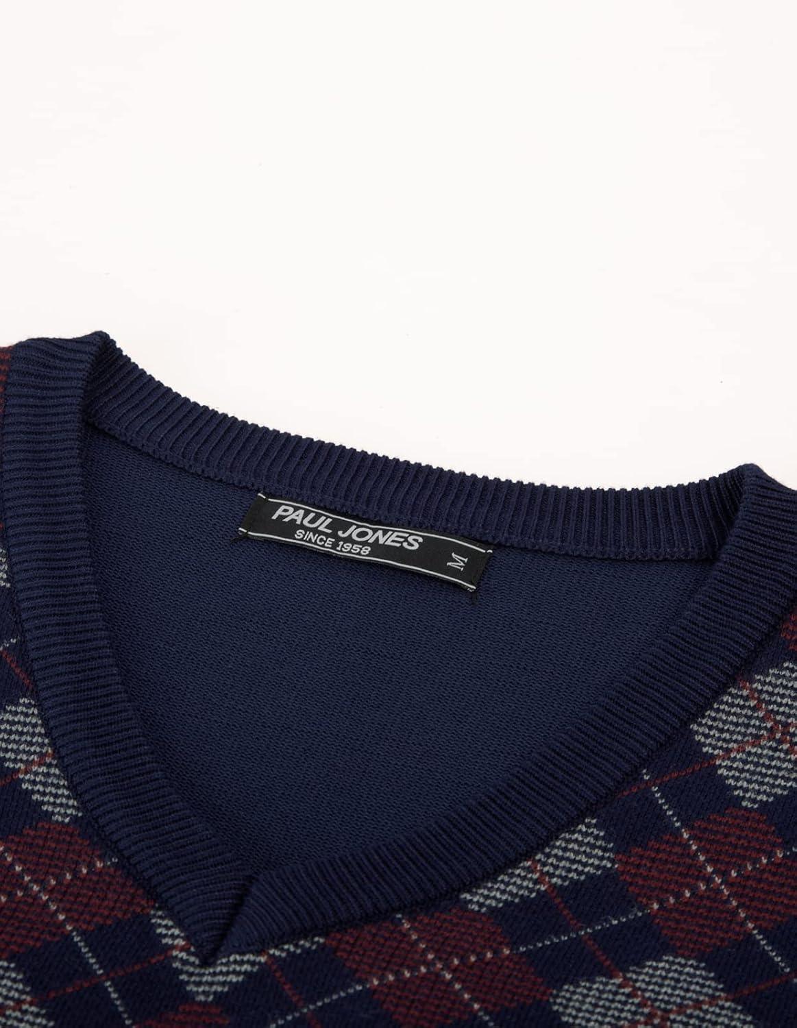 PJ PAUL JONES Mens V-Neck Knitted Sweater Vest Solid Plain Sleeveless Pullover Knitwear(Navy Blue-argyle)