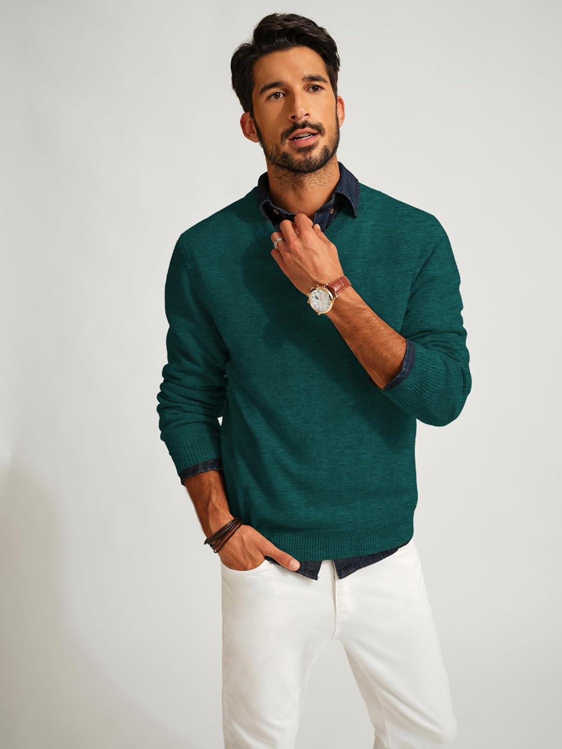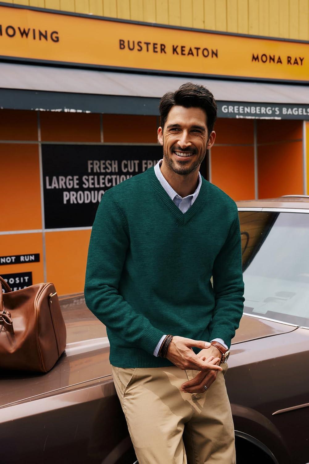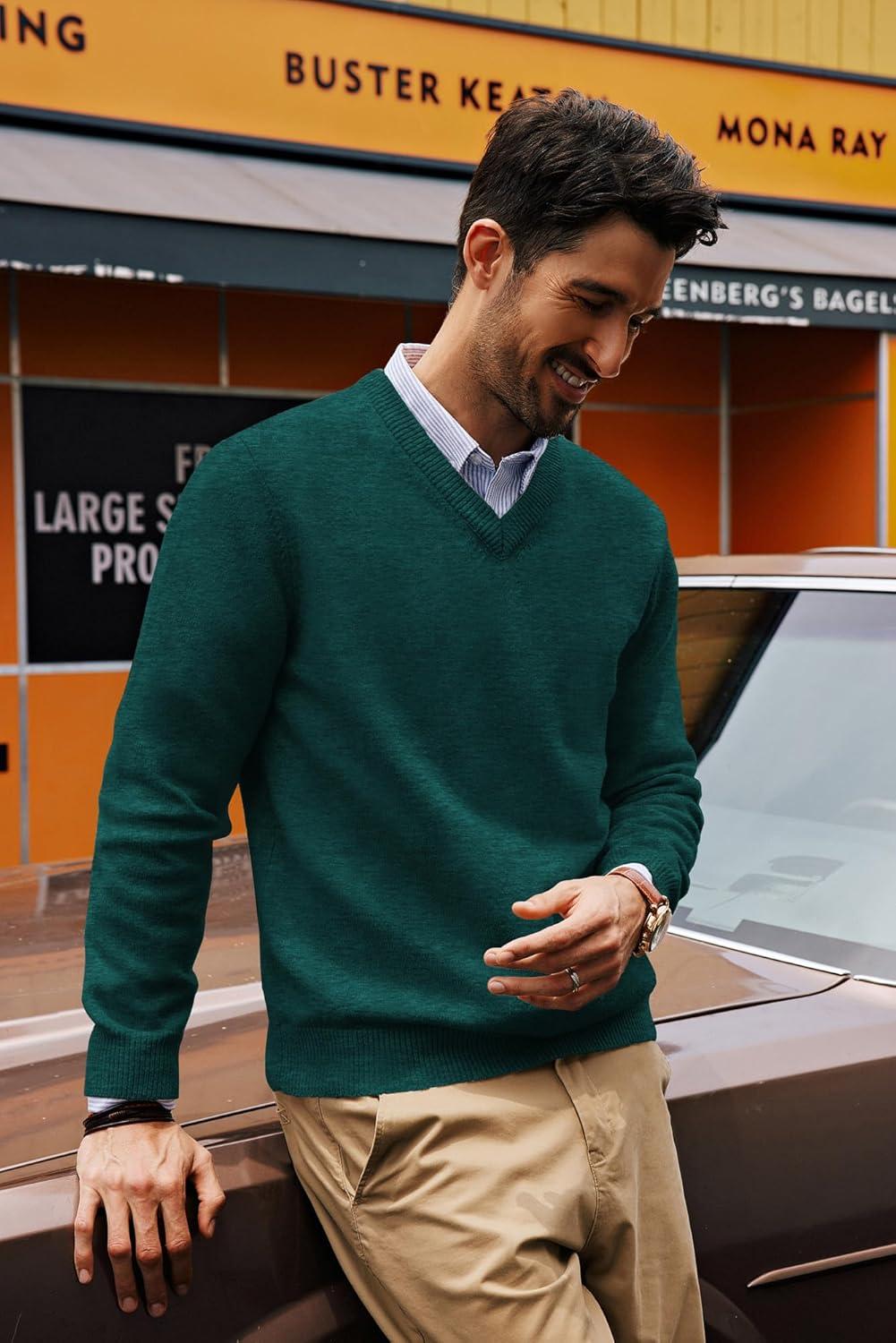 PJ PAUL JONES Mens V Neck Pullover Lightweight Wool Blend Long Sleeve Knit Sweater(Dark Green)