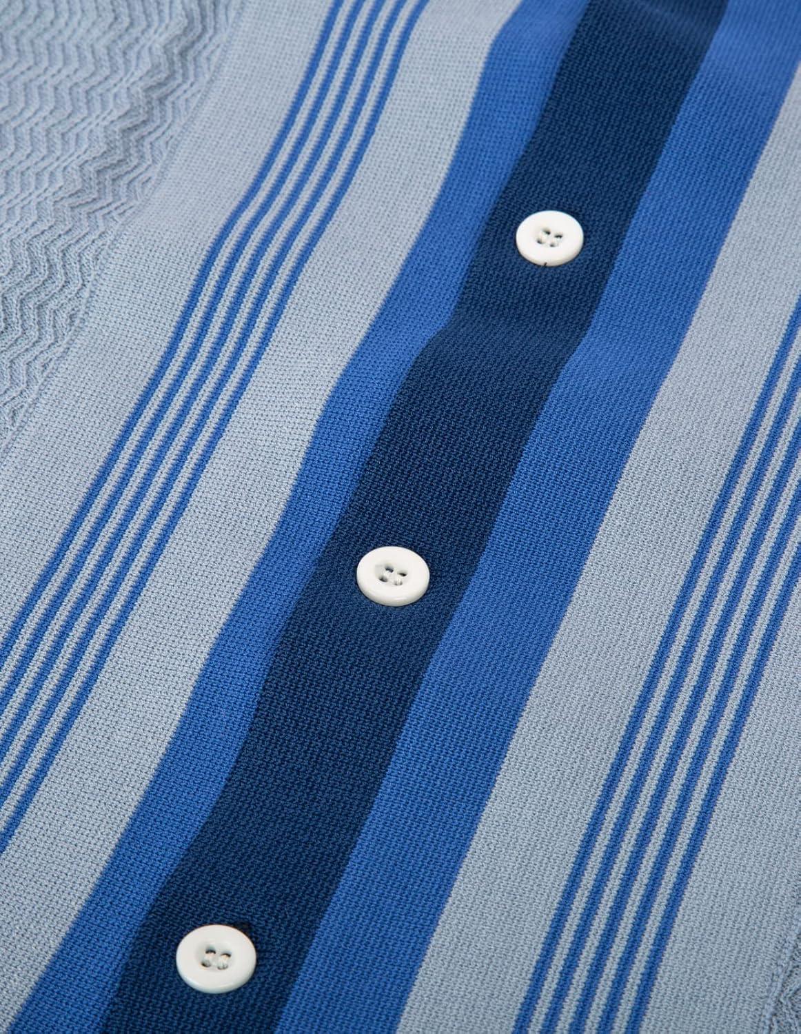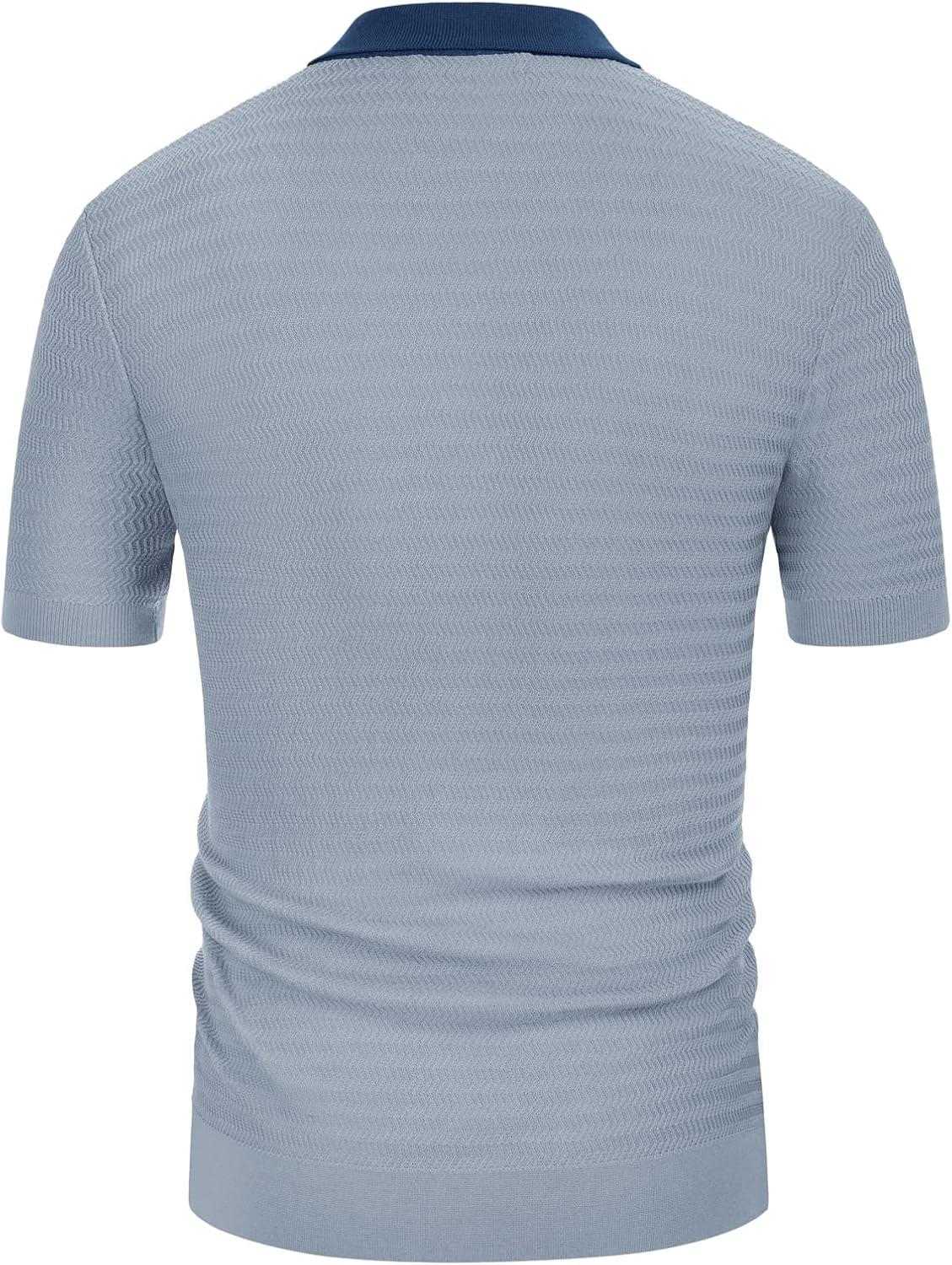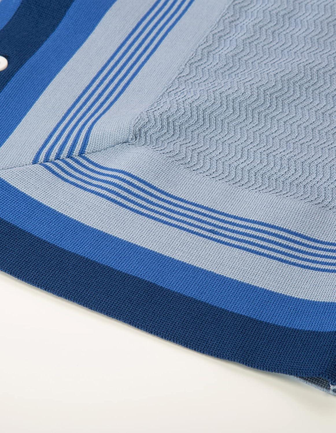 PJ PAUL JONES Men’s Vintage Stripe Knit Polo Shirts Short Sleeve Stylish Button Down Cardigan Sweater(Gray Blue)