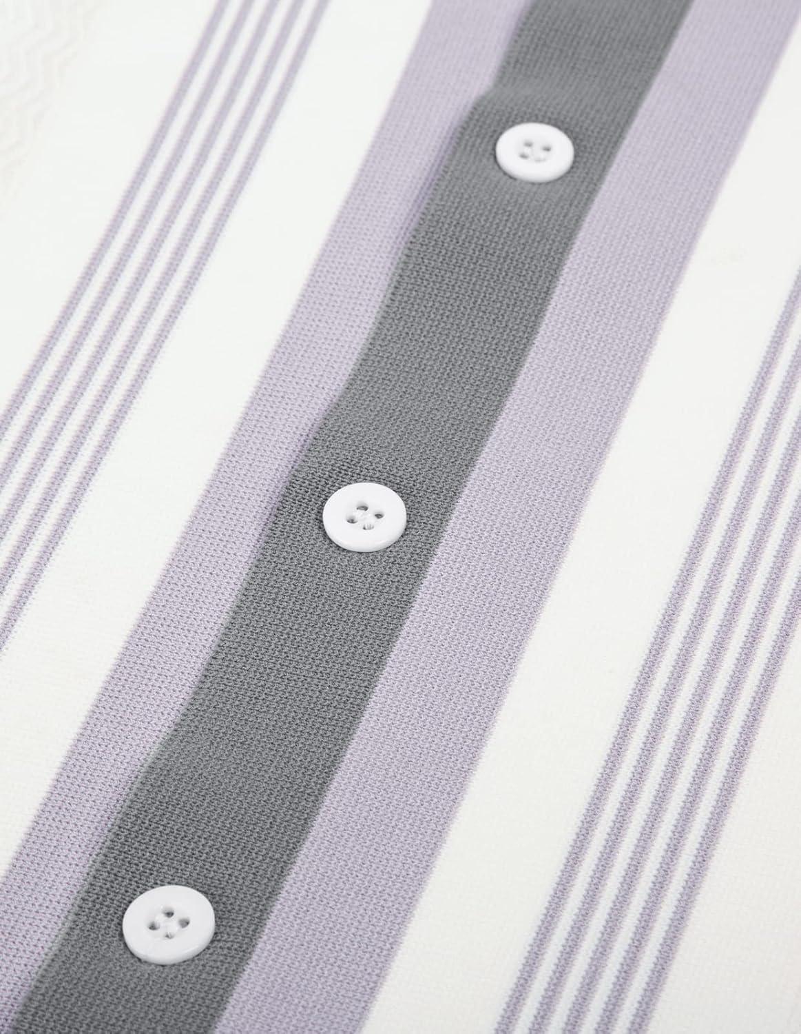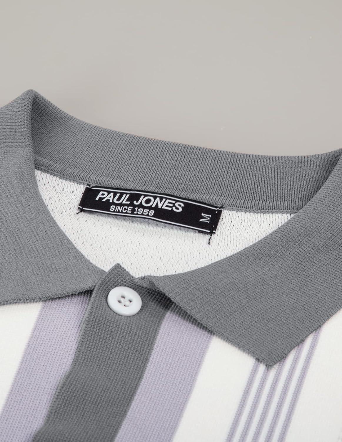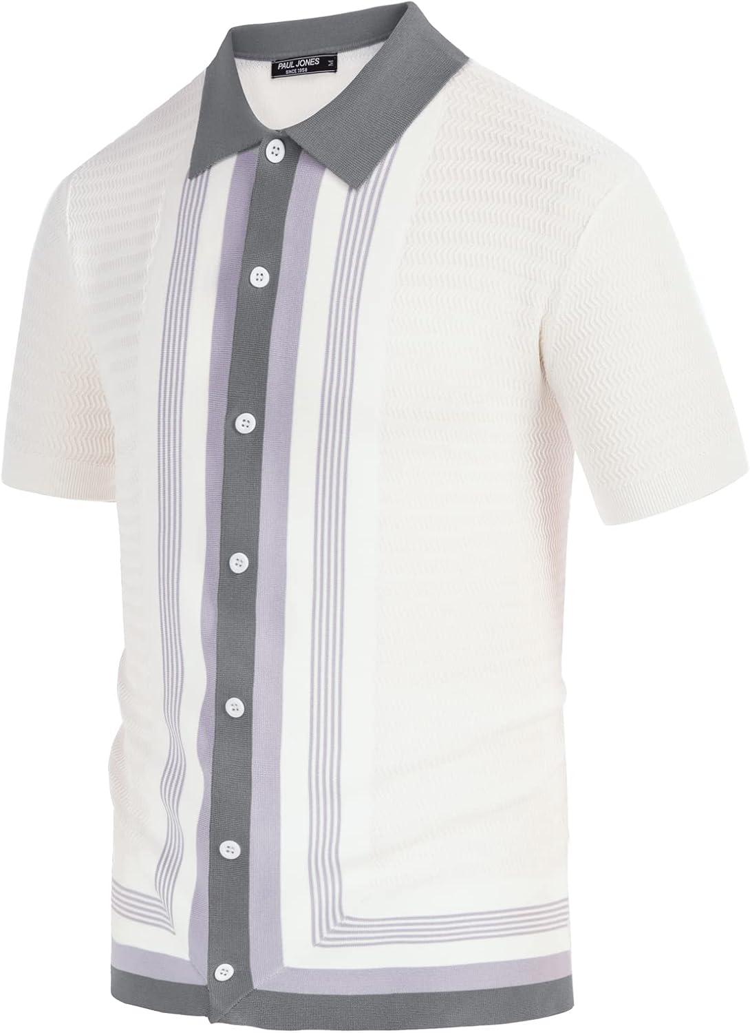 PJ PAUL JONES Men’s Vintage Stripe Knit Polo Shirts Short Sleeve Stylish Button Down Cardigan Sweater(Ivory)