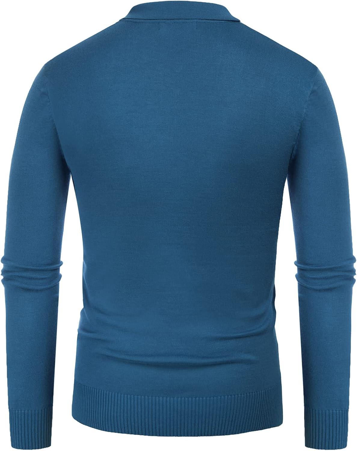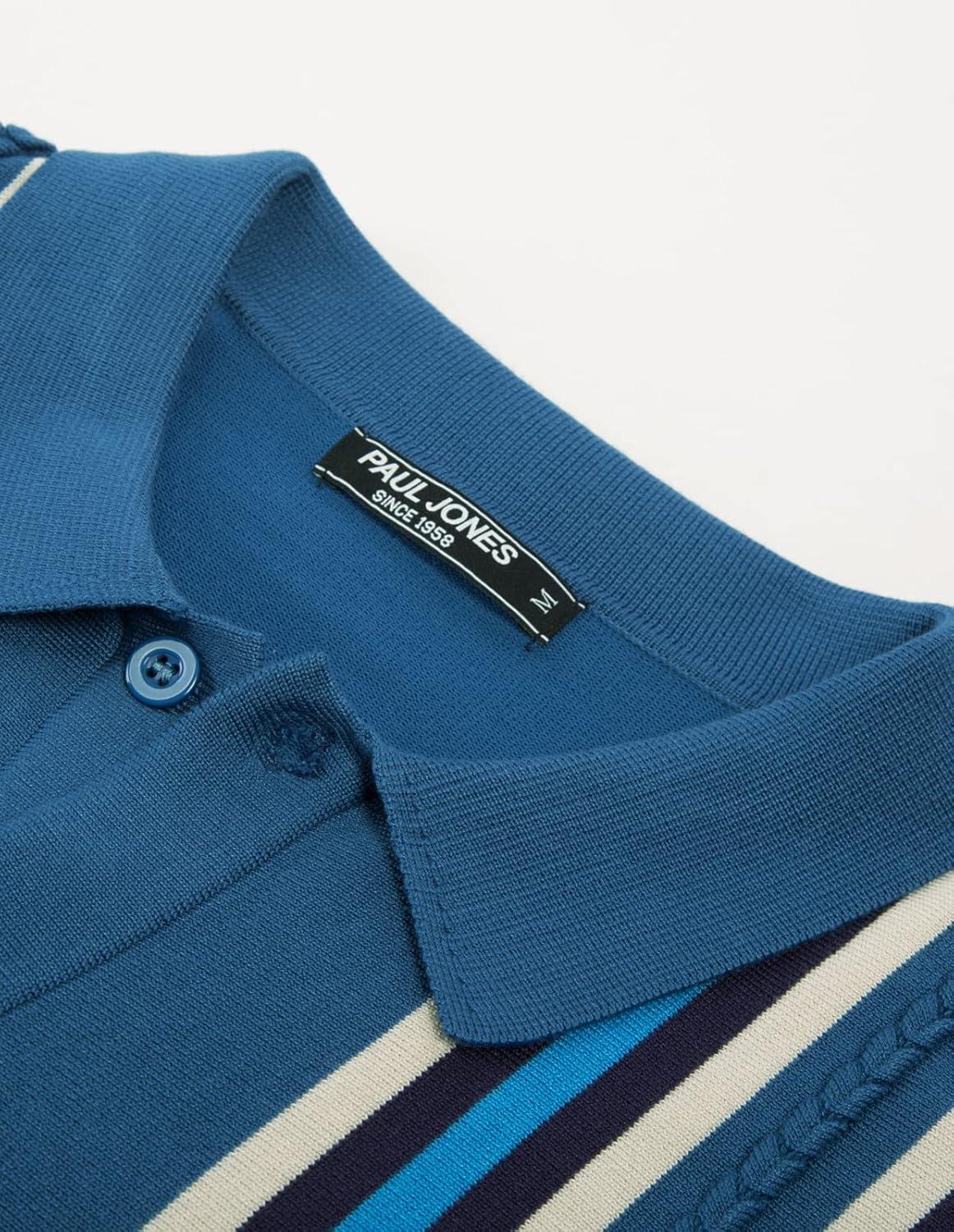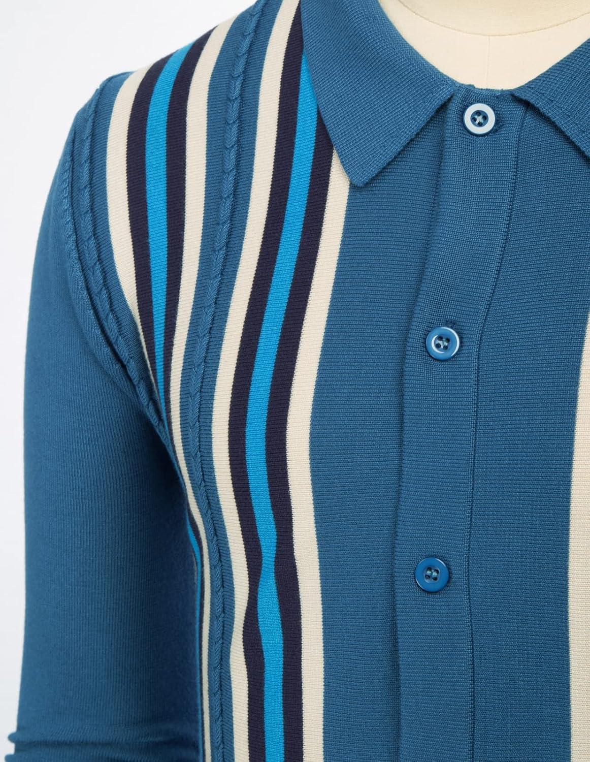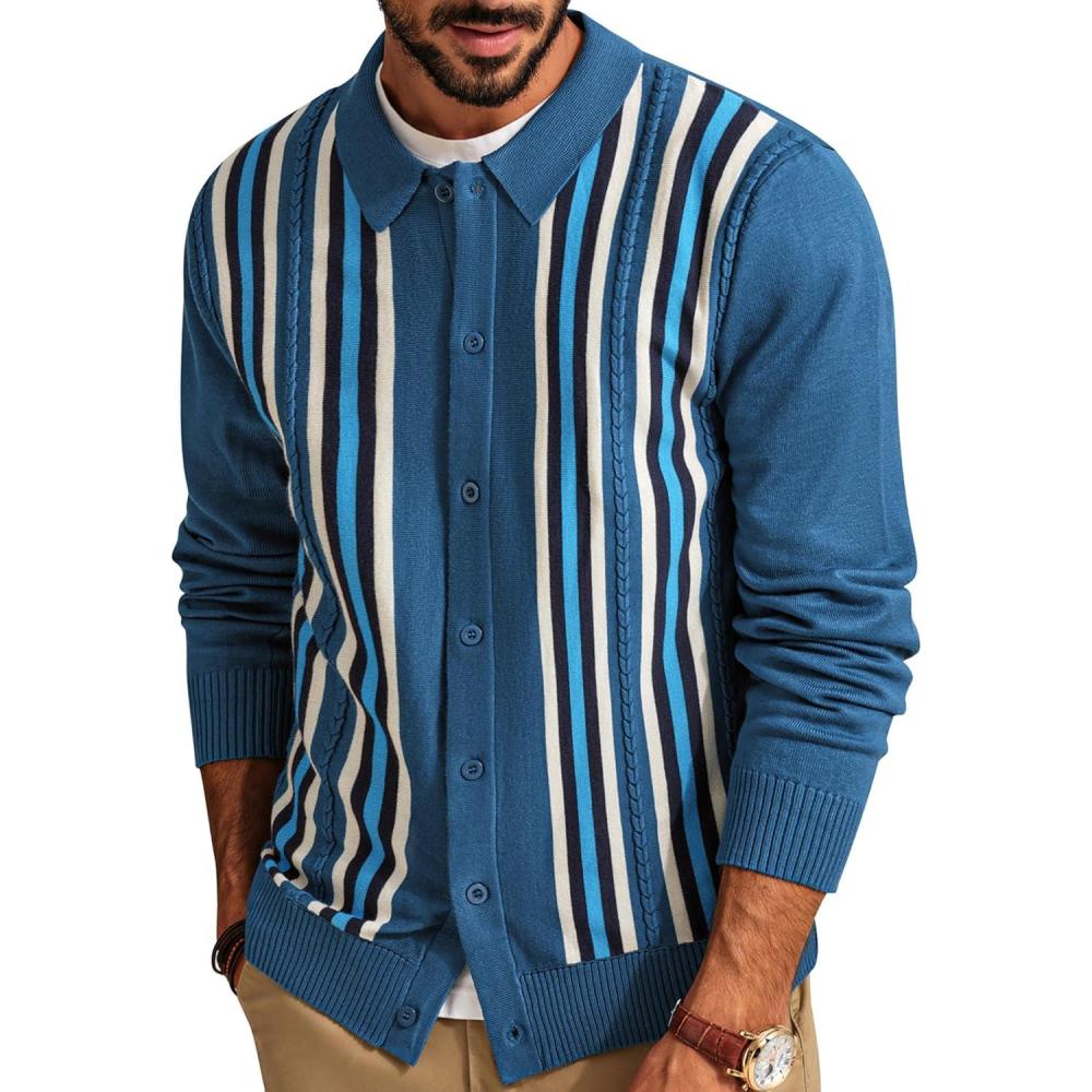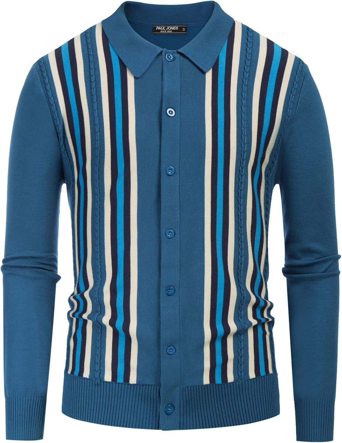 PJ PAUL JONES Mens Vintage Striped Knit Polo Shirt Long Sleeve Button Down Cardigan Sweater(Denim Blue-long Sleeve)