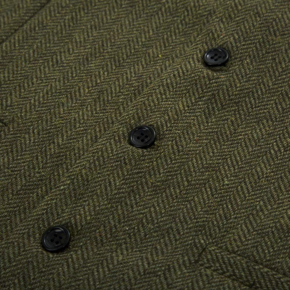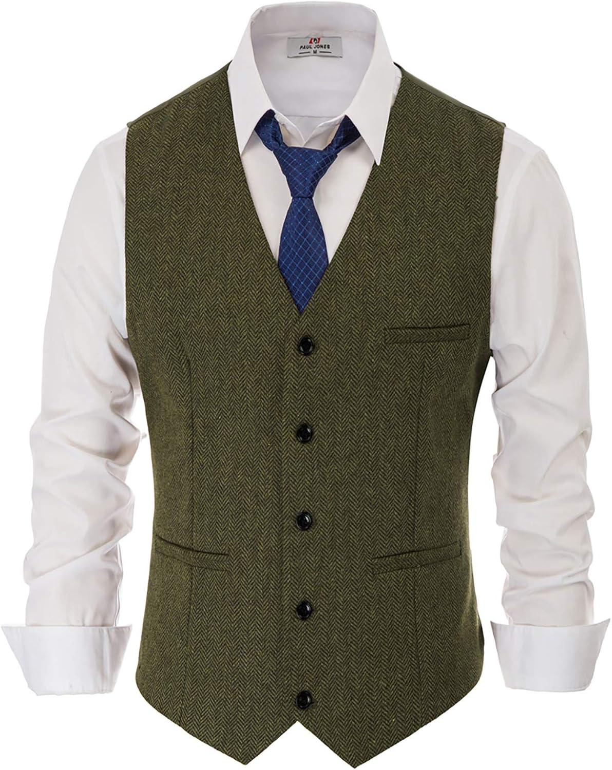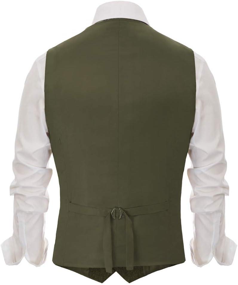 PJ PAUL JONES Men’s Western Herringbone Tweed Suit Vest Wool Blend V Neck Slim Fit Waistcoat(Army Green)