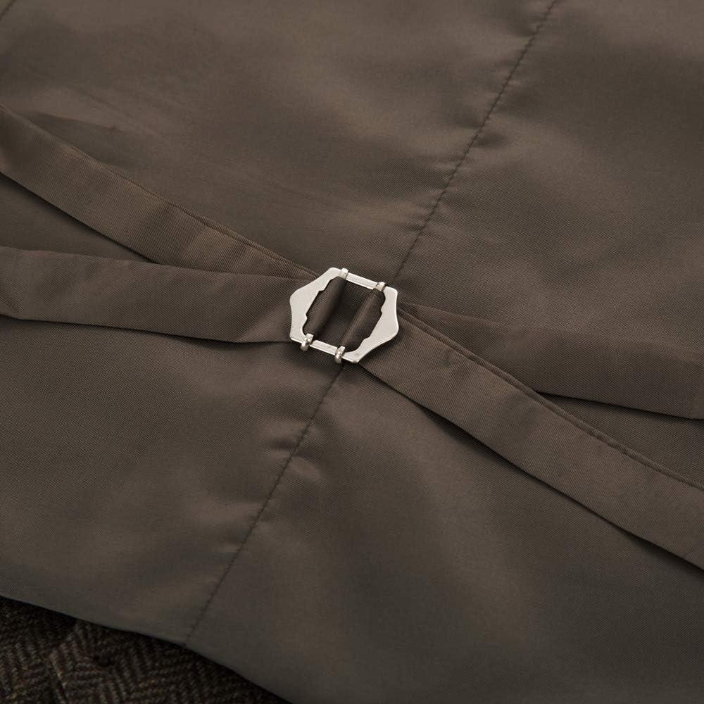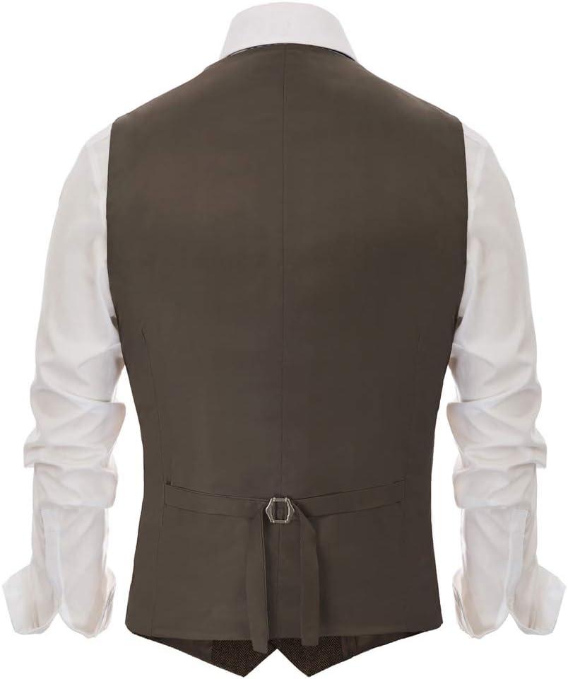 PJ PAUL JONES Men’s Western Herringbone Tweed Suit Vest Wool Blend V Neck Slim Fit Waistcoat(Brown)