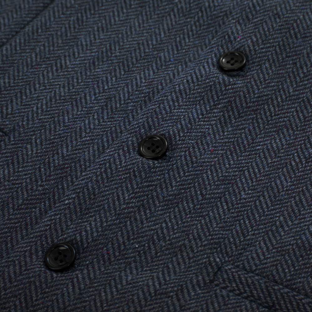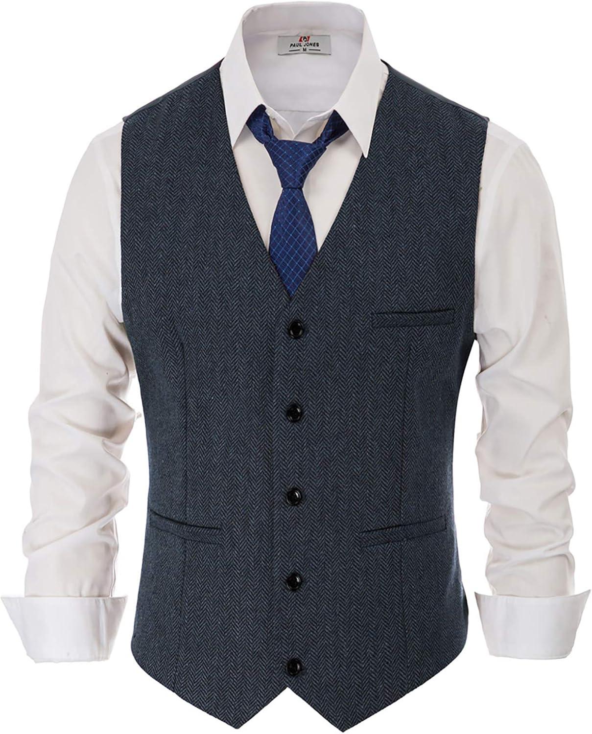 PJ PAUL JONES Men’s Western Herringbone Tweed Suit Vest Wool Blend V Neck Slim Fit Waistcoat(Navy Blue)