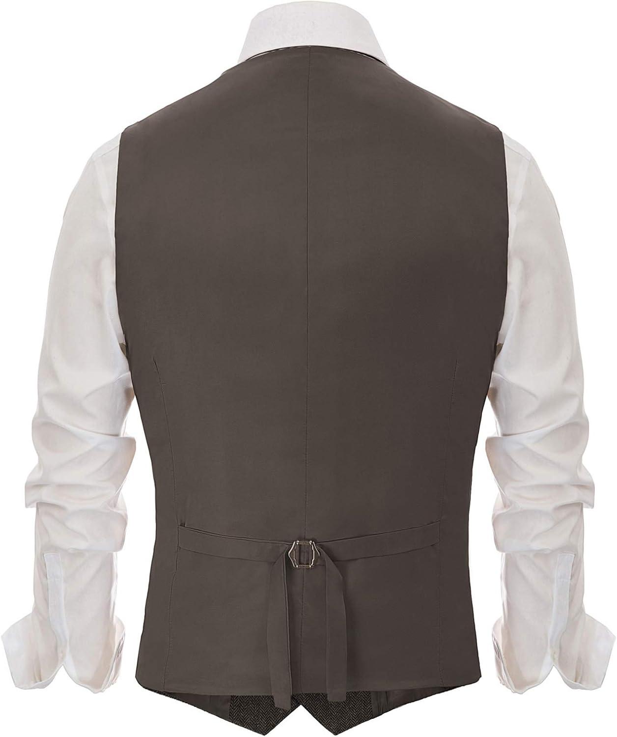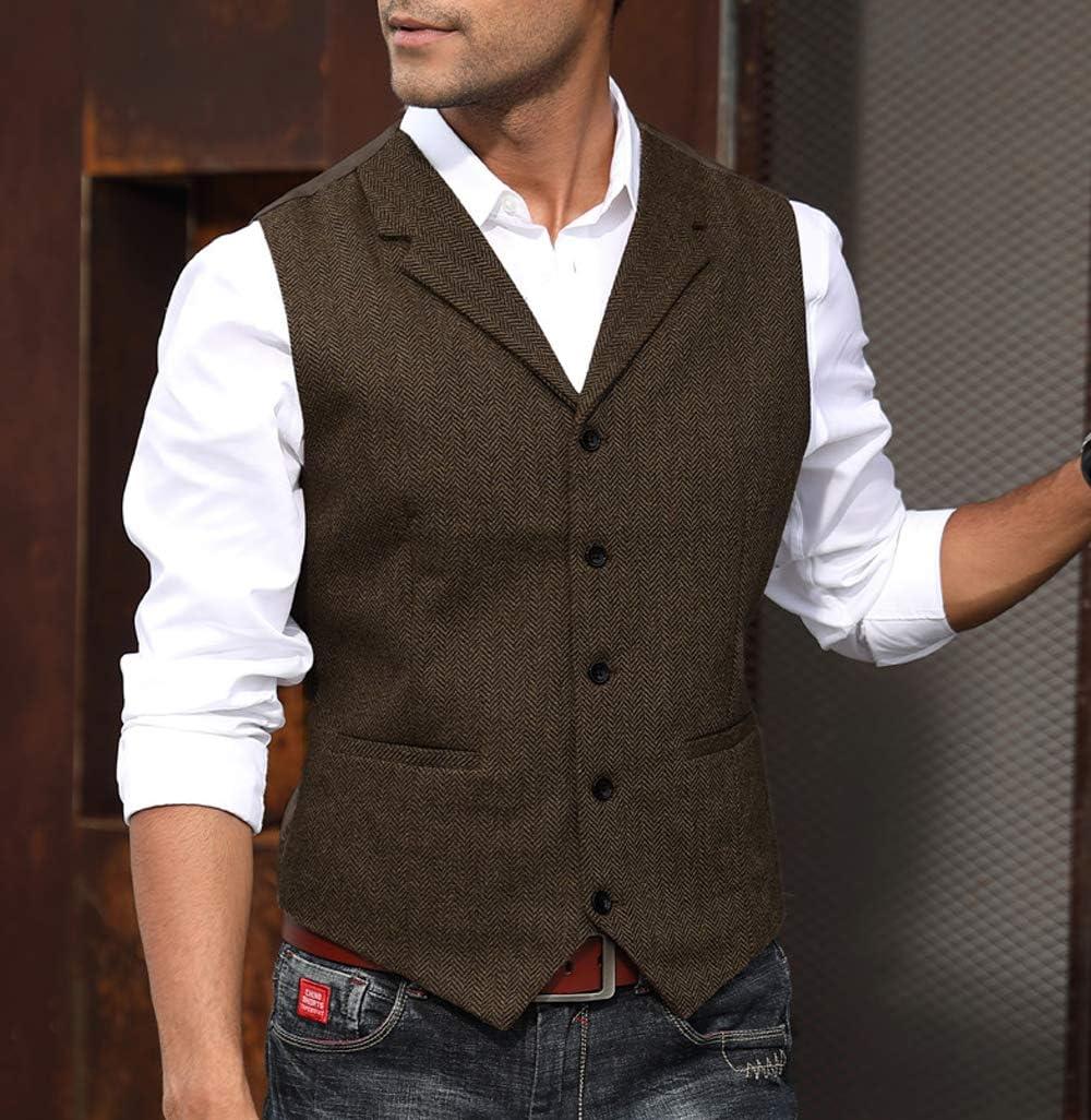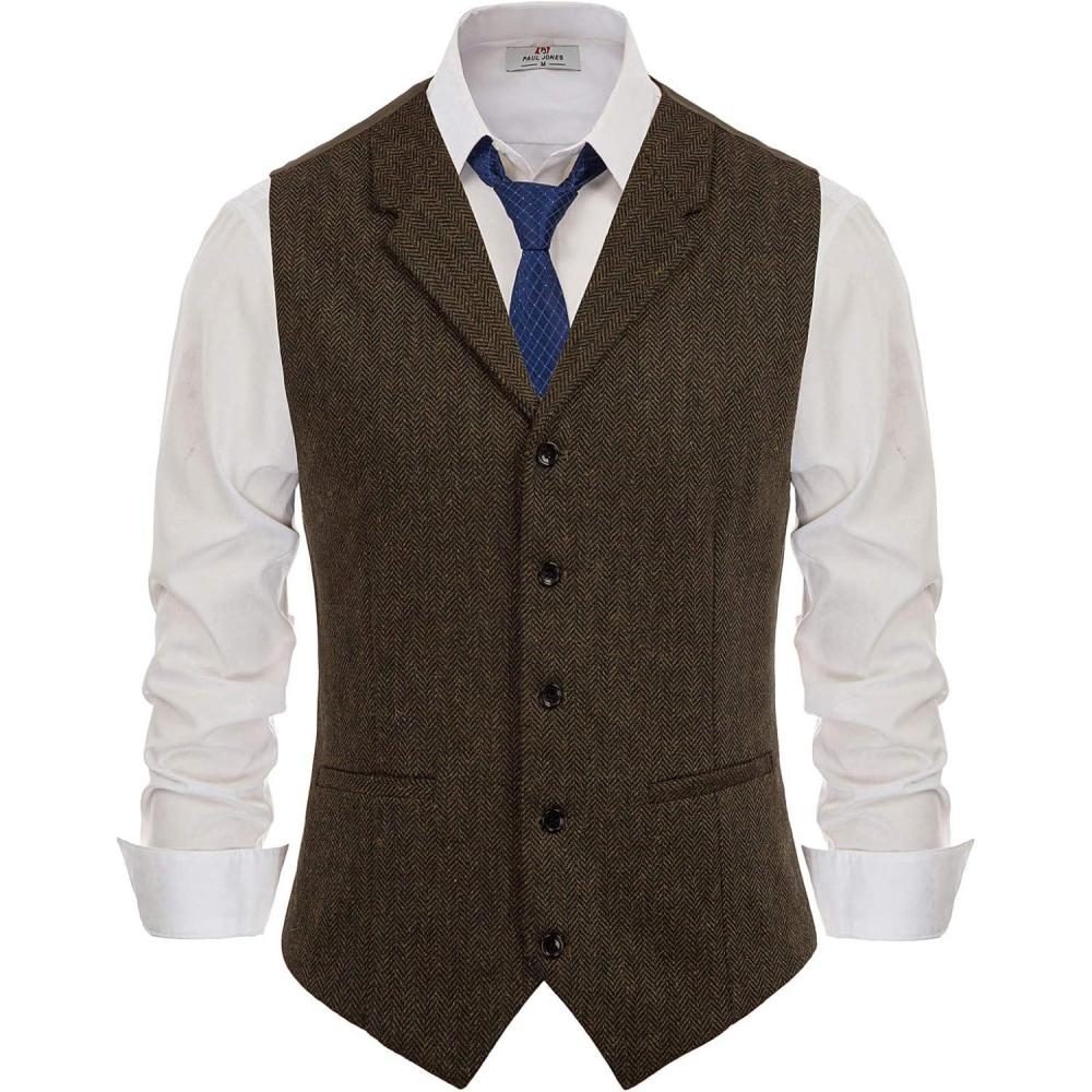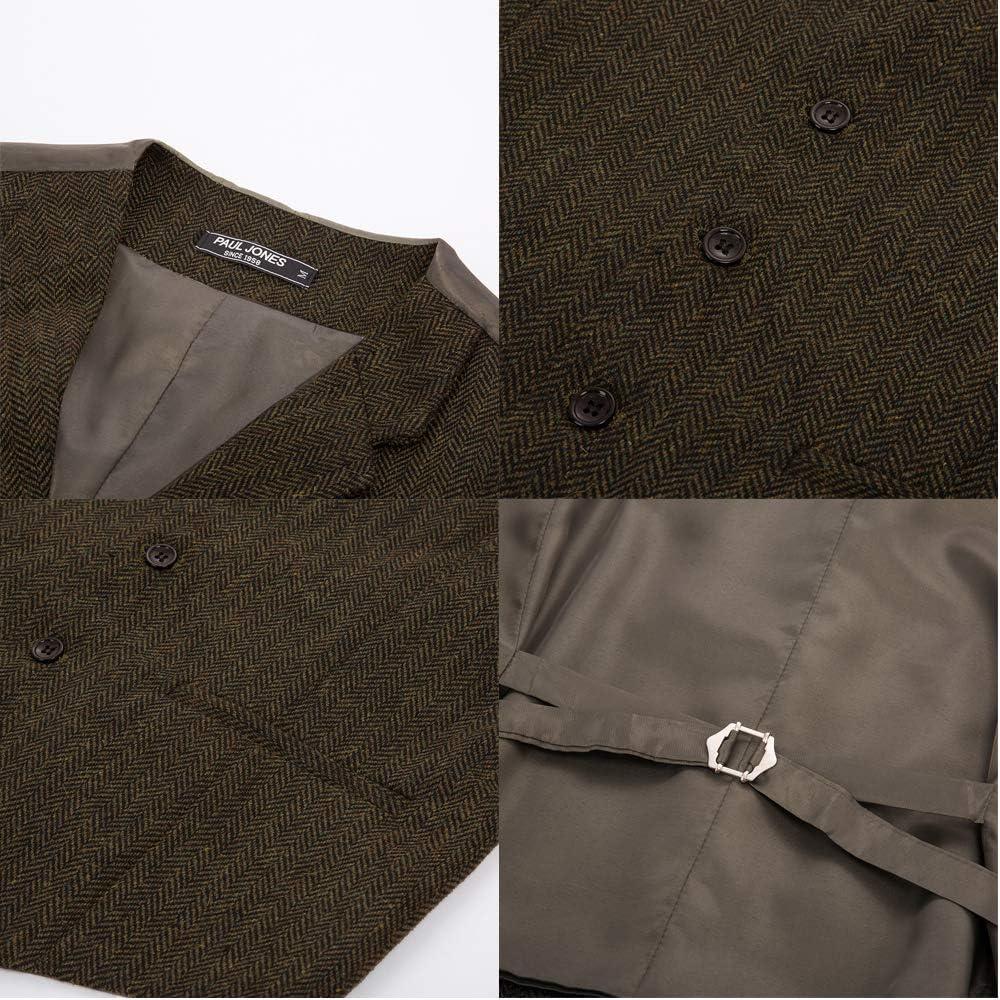 PAUL JONES Men's Herringbone Iirsh Tweed Wool Blend Vest Tailored Collar Slim Fit Waistcoat V Neck Single Breasted Suits Dress Vest