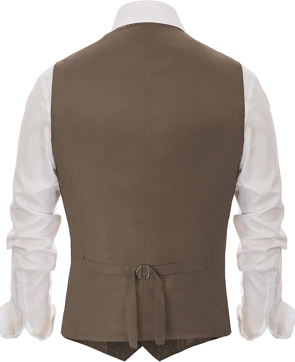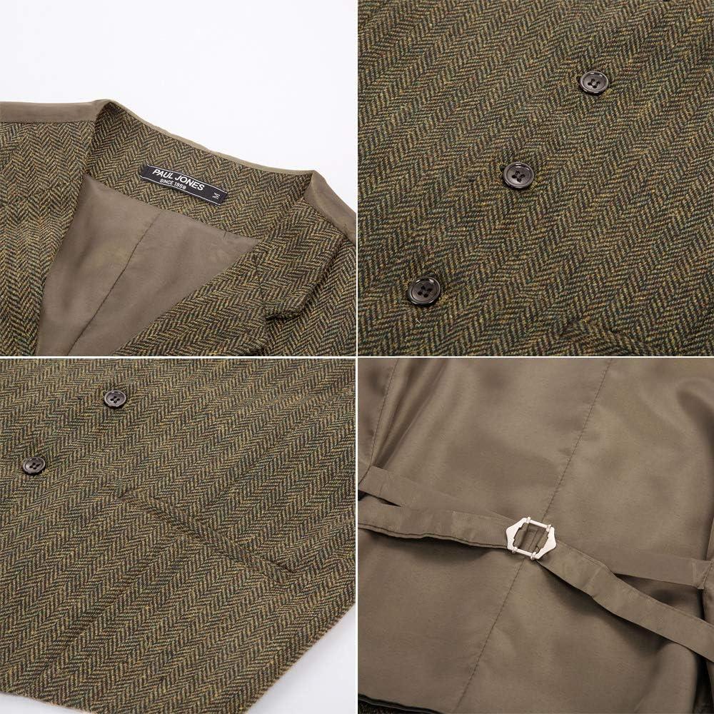 PAUL JONES Men's Herringbone Iirsh Tweed Wool Blend Vest Tailored Collar Slim Fit Waistcoat V Neck Single Breasted Suits Dress Vest