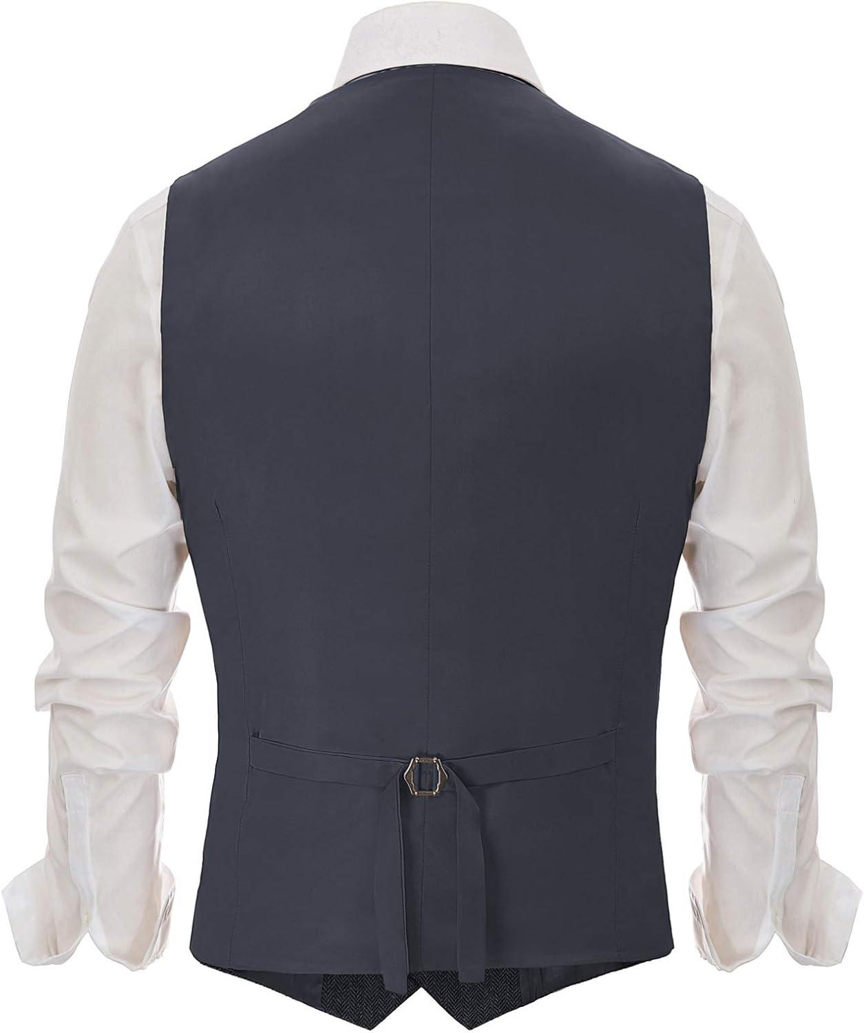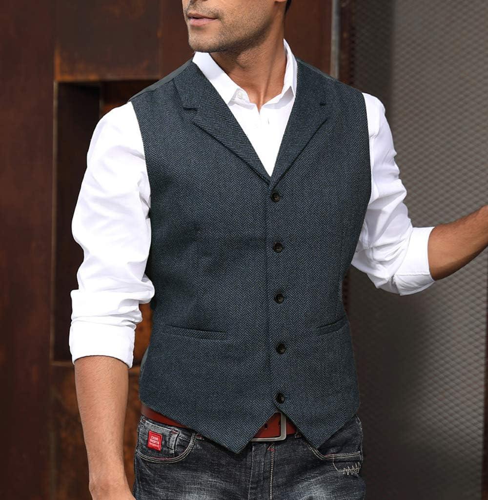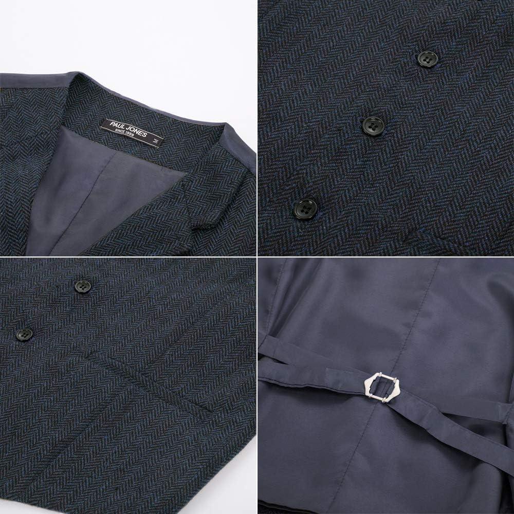 PAUL JONES Men's Herringbone Iirsh Tweed Wool Blend Vest Tailored Collar Slim Fit Waistcoat V Neck Single Breasted Suits Dress Vest