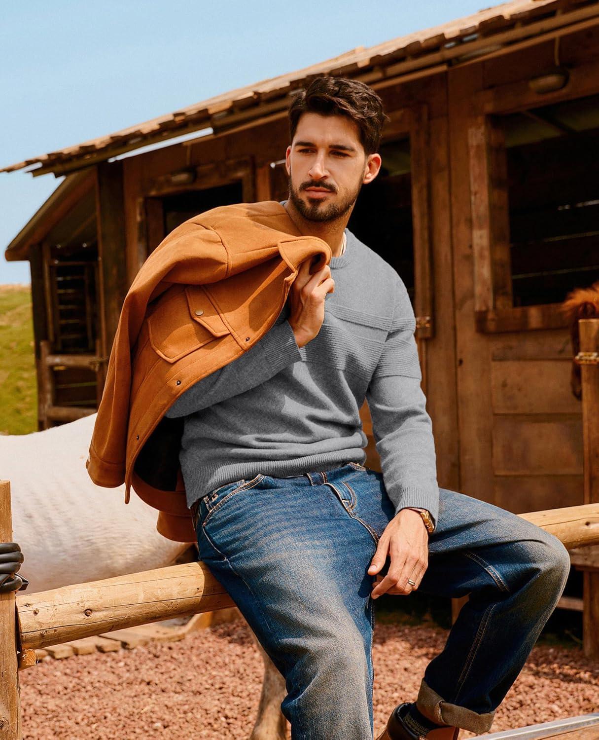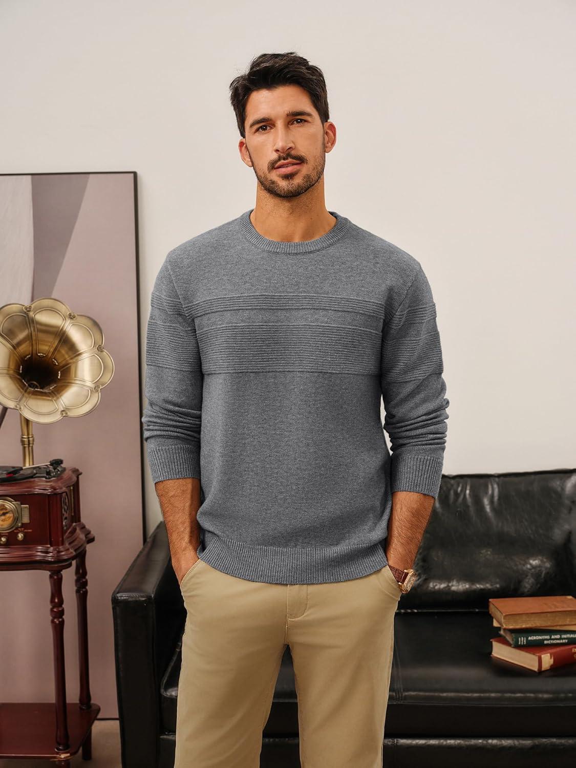 PJ PAUL JONES Sweaters for Men Casual Crewneck Pullover Sweater Knit Textured Sweaters(Dark Grey)